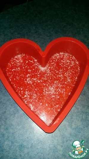 Пока тесто вымешивается, смажьте форму маслом (я еще присыпала слегка кокосовой стружкой).