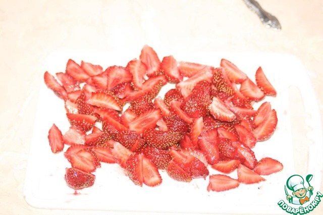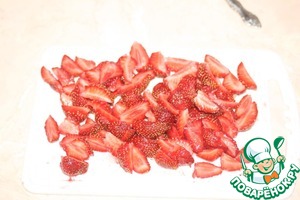 Ягоды клубники помыть, обсушить и разрезать на 4 части.