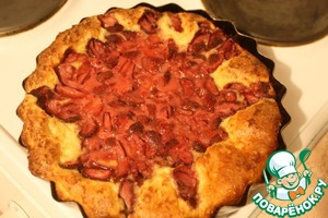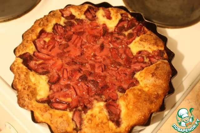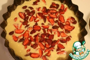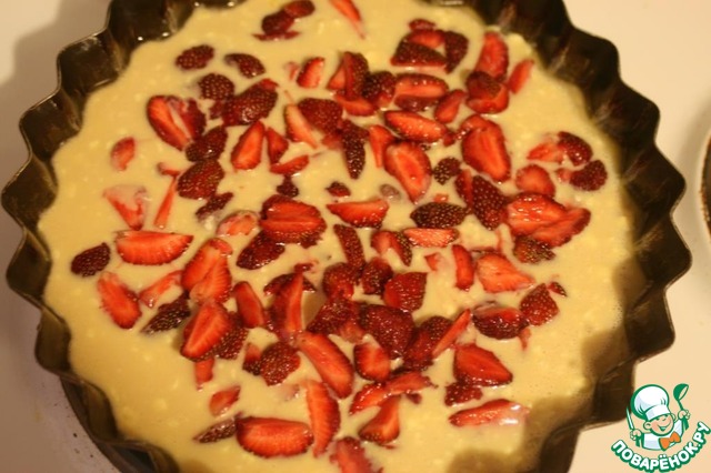 Круглую форму смазать маслом, вылить тесто, сверху распределить клубнику и выпекать 20-30 мин. -