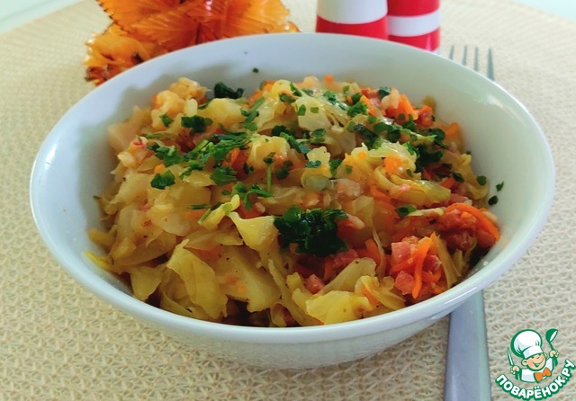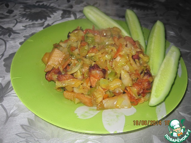 Кстати "Тушеная капуста" - это капуста и ничего больше, а "капуста с мясом" или "овощное рагу из капусты с мясом" - совсем другое.