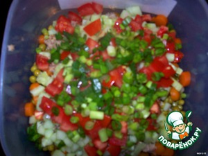 Добавить зеленый лучок. |