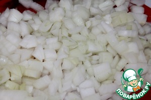 Делаем соус. Для этого произвольно нарезаем лук.