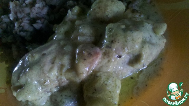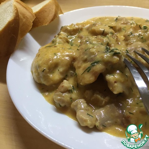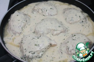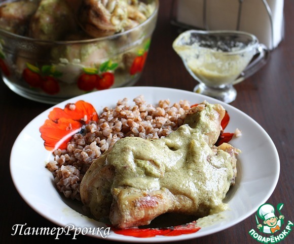 На нашу курочку выкладываем соус. И на очень медленном огне под закрытой крышкой тушим еще 15 - 20 минут. Иногда переворачиваем.