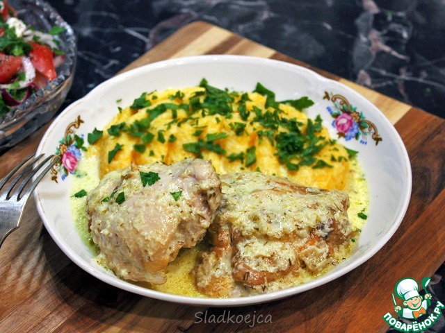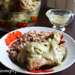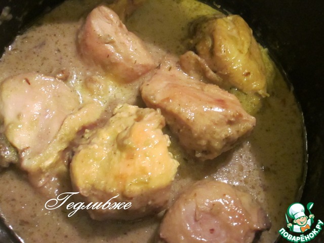 Гедлибже - блюдо кабардинской кухни. Очень вкусное и сытное блюдо, которое очень легко приготовить. Соус к курочке просто изумительный. Можете изменить в составе ингредиенты и добавить свои любимые, но неизменно в нем наличие курицы, лука и сметаны.