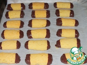 Нарезать брусочки примерно по 7 см. Выложить на застеленный пекарской бумагой противень. Выпекать при t-180* - 10 минут (я выпекала дольше, т. к. за 10 минут у меня печенье не пропеклось). По готовности печенью дать остыть.