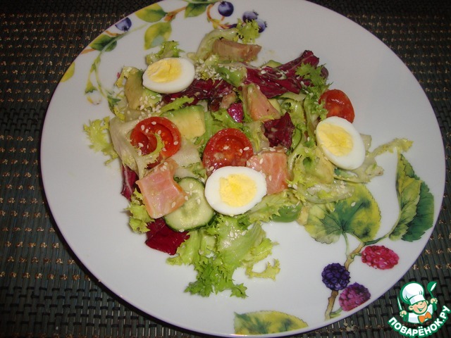 Как-то очень полюбился мне салат Фризе... Он такой дивный, хрустящий, с едва-едва уловимой горчинкой (в отличие от откровенно горькой рукколы)... Вот я и экспериментирую с ним. Сегодня очередной эксперимент.