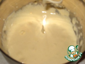 желтки отделяем от белков и взбиваем в белую пену с сахаром, добавляем крахмал.
