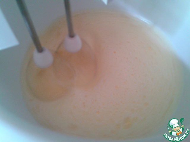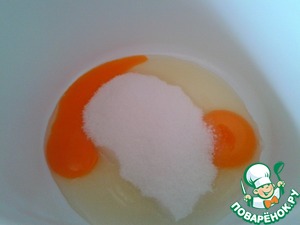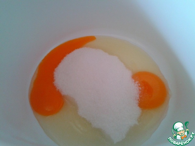 Взбиваем яйцо, желток и сахар до пенной массы.