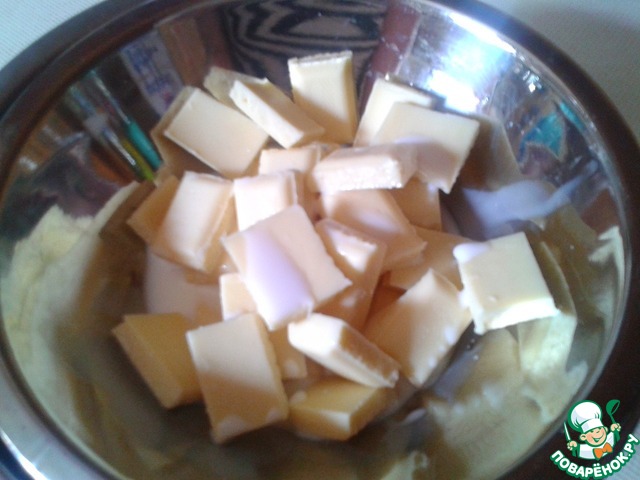 Шоколад ломаем на кусочки, добавляем 3 ст. л. молока и ставим на водяную баню.