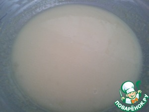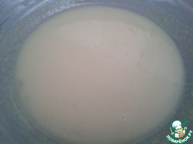Добавляем теплое молоко к яичной смеси и перемешиваем, стараясь не взбивать до пены (в последующем может пригорать).