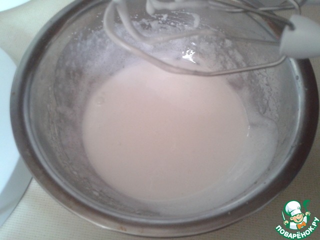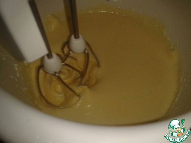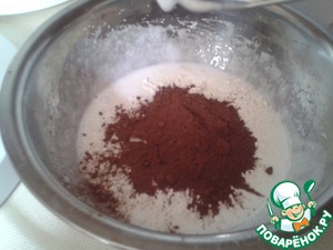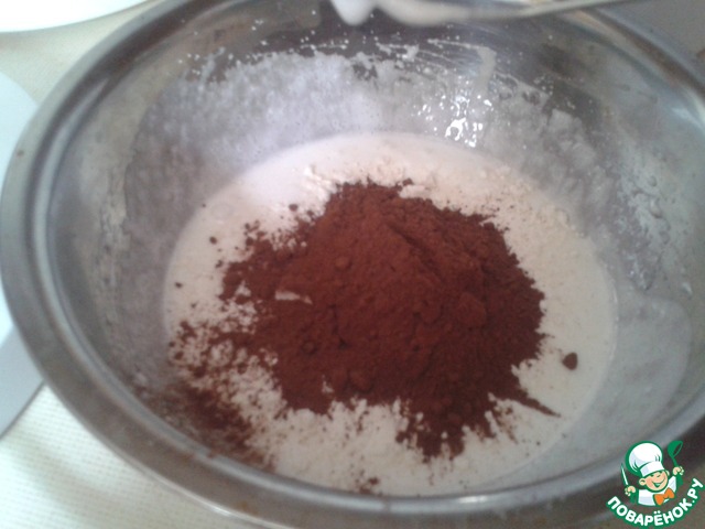Добавляем муку, какао-перемешиваем, добавляем сливочное масло.