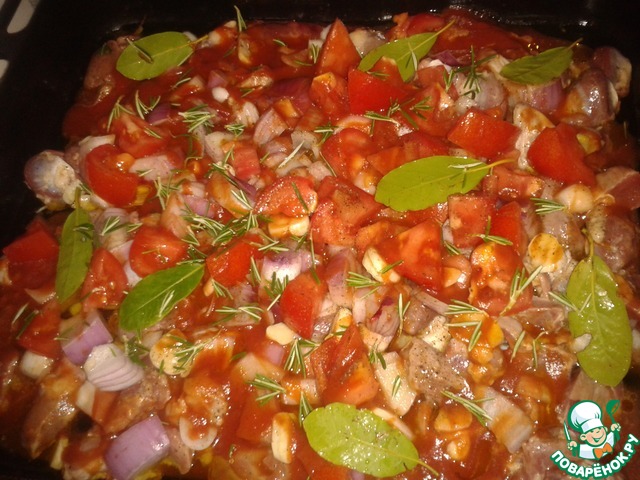 Рецепт «Куриные потрошка с помидорами и розмарином в духовке»: