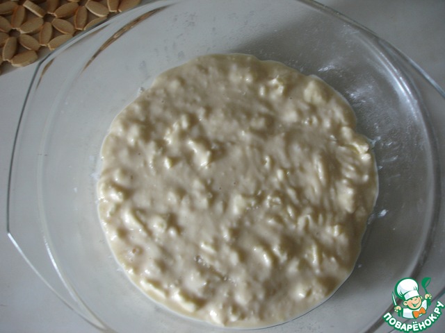 Форму для выпекания слегка смазываем маслом и присыпаем мукой. Выкладываем тесто в форму