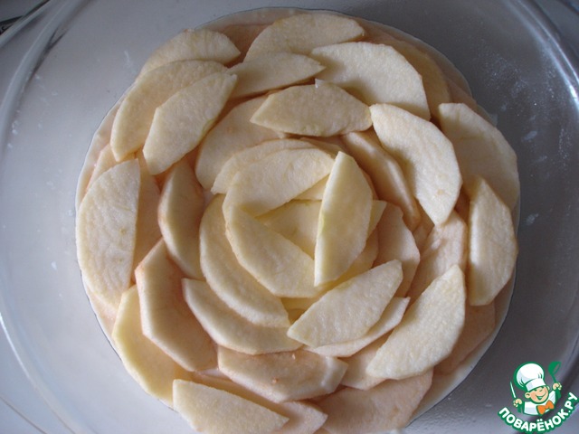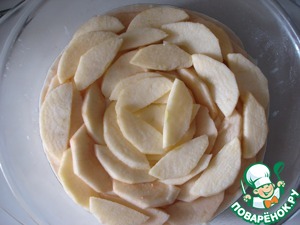 Яблоки режем тонкими дольками и красиво выкладываем сверху