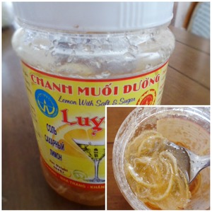 Теперь пару слов о конфитюре. Мне посчастливилось найти обалденную штуку! Как Вы сами можете видеть-все четко и ясно написано: соль сахарный лимон:)) В общем, это что-то вроде засахаренного лимона, но с солью. Что-то подобное на наших полках в России я видела. Поэтому при отсутствии данного продукта, предлагаю взять любой цитрусовый конфитюр (хотя желательно все-таки лимонный) или варенье и добавить в него щепотку соли. Естественно, для нелюбителей оригинальностей можно соль совсем не добавлять, но поверьте мне-вкус оочень необычный.