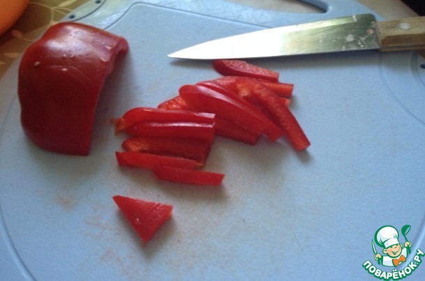 • Потом красный... Последовательность нарезки болгарского перца очень важна!