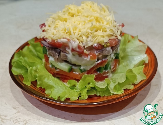Великолепный по вкусовым качествам салат, который станет украшением вашего праздничного стола и обязательно понравится вашим близким и гостям! Уверен что попробовав сделать этот салат в первый раз, он прочно войдёт в ваше меню! Приятного аппетита друзья!
