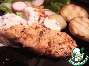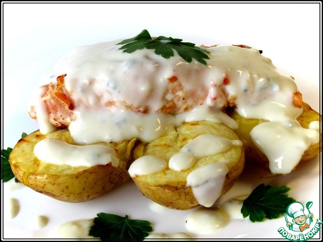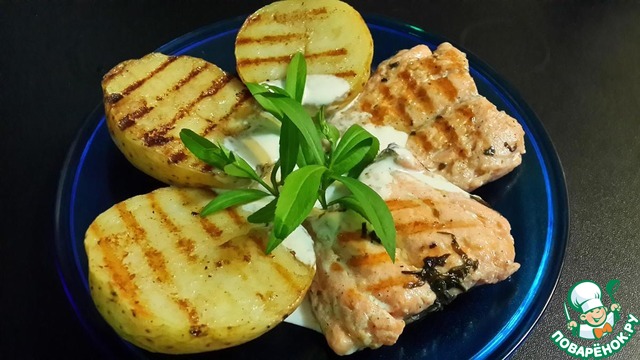 Рецепт «Сёмга и картофель-гриль с соусом из голубого сыра и сливок»:
