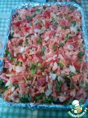 Овощи выкладываем на картофель. Ставим в разогретую до 200 градусов духовку на 1 час. ГОТОВО!!!
