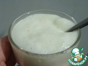 Отдельно остановлюсь на подготовке разрыхлителя. В зависимости от производителя он бывает в пакетиках по 10 и 18 граммов, и каждый рассчитан на 500 граммов муки. Для этого пирога необходимо 13 г. разрыхлителя, если в пакетике 18 граммов и 7 г., если в пакетике 10 граммов. Разрыхлитель необходимо "погасить" двумя столовыми ложками лимонного сока. Получится такая пенная масса,