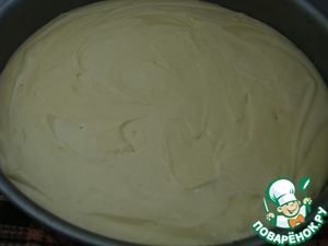Выложить тесто в форму, диаметром 26 см, смазанную маслом.