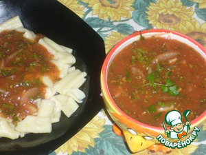 Этот соус великолепно подходит для всех макаронных изделий: вермишель, лапша, равиоли и т.п. А мои детишки едят его даже с пельменями...