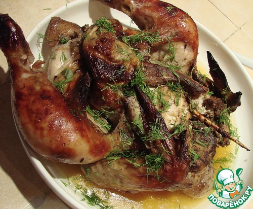 2. Оставляем нашу курочку мариноваться при комнатной температуре (накройте пищевой пленкой или крышкой) 6 часов. Можно меньше, если курочка не слишком крупная.
