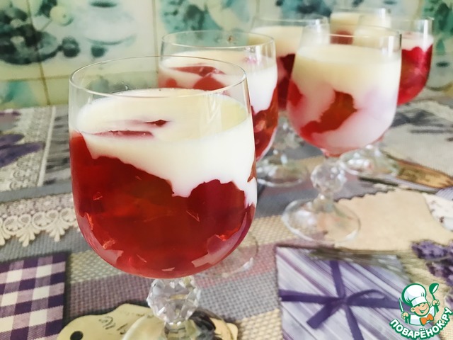 Можно развести больше сметаны и залить желе полностью, у меня этого не получилось по этому сверху повехность не гладкая, а видны немного кубики желе, но мы их сьели и так))
