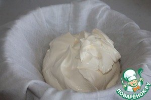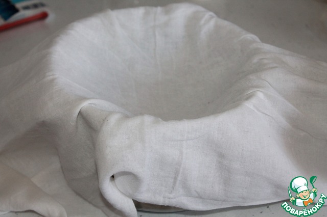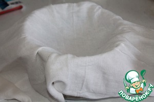 Накрываем сметану краями ткани и отправляем в холодильник. Лучше всего на ночь. Ну если нет времени, то как минимум на 4 часа.