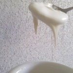 Вот такая сметана получается через 4 часа. Она легко отделяется от ткани.