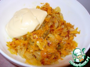 Морковь трем на крупной терке, лук режем небольшими кубиками и обжариваем на растительном масле. Добавляем красный перец, солим и даем полностью остыть. Добавляем плавленый сыр и перемешиваем. Можно добавить несколько капель лимонного сока.