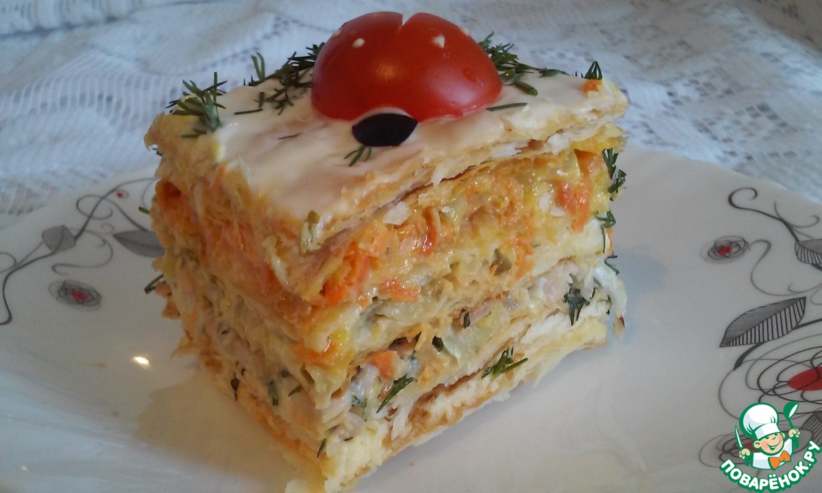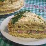 Закусочный торт "Наполеон" с ветчиной и сыром