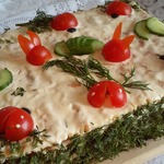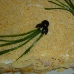 - Майонез ("Хеллманн" 50г в сырную прослойку, 50г в огуречную, 50г для украшения) — 150 г