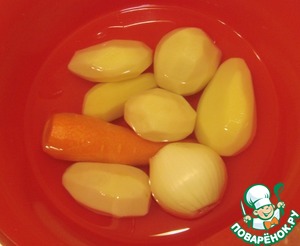 Ставим закипать воду, а тем временем очистим овощи. У меня картошечки были маленькие, поэтому взяла 6 штук.