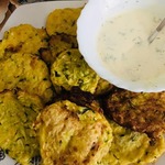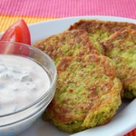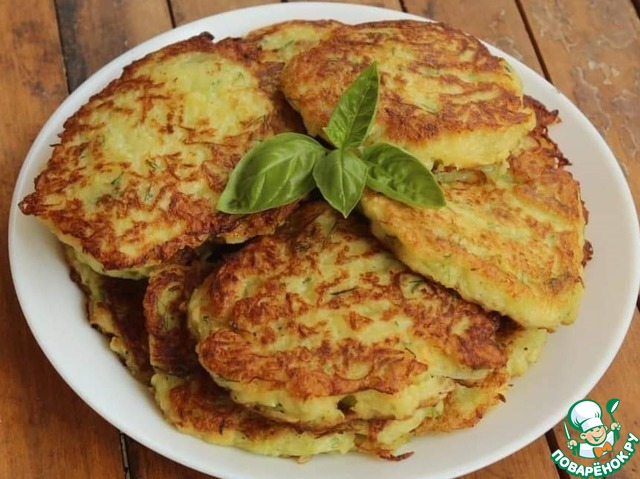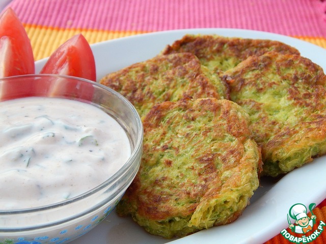 За 15 лет ежедневных кулинарных опытов дома лишь раз я слышала жалобу о том, что приготовлено мало. Обычно после ужина остаётся достаточно еды, чтобы на следующий день взять с собой обед. Следуя своим обычным меркам, я сочла, что пяти кабачков цуккини будет достаточно, чтобы накормить двух взрослых-не-обжор и одного ребенка с крошечным аппетитом. Но вот тут-то я и услышала возмущенное "а где еще" во второй раз, потому что оладьи из цуккини оказались замечательными, ну и потому что кабачки потеряли много своих соков в процессе приготовления. Этот рецепт даёт примерно 15 оладий среднего размера. Они хорошо хранятся в холодильнике и заморозке, поэтому можно наготовить много и наслаждаться ими на следующий день или позже. Сами оладьи мягкие на вкус, но я подаю их с острым соусом из йогурта. Так все рады: и взрослые, которые любят разнообразные приправы, и дети, предпочитающие еду с нежным вкусом: для них можно подать просто йогурт без специй.