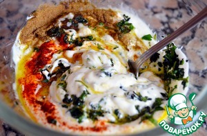 4. Пока цуккини сидит в дуршлаке, приготовьте соус: просто смешайте все ингредиенты.