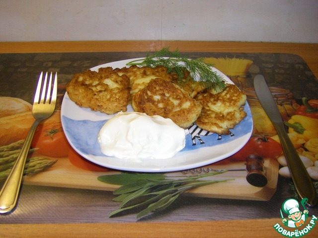 8. Поставьте оладьи в духовку и запекайте 8-10 минут до получения хрустящей корочки. Подавайте с соусом.