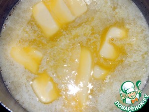 Пока пекутся эклеры, приготовим помадку. В кастрюльку выкладываем масло, сахар, просеянное какао и молоко. Провариваем до загустения (можно добавить 1 ч. л. муки).