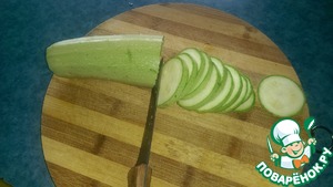 Кабачок нарезаем кружочками шириной около 5 мм.