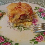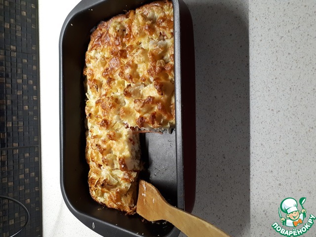 Заливаем получившейся смесью запеканку и ставим выпекаться 40 мин при той же температуре.