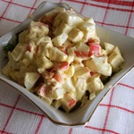 Очень люблю салаты и, как мне кажется, знаю в них толк. Одних только любимых салатов больше тридцати, наверное. Этот один из самых любимых, несмотря на его простоту и даже, можно сказать, примитивность. Попробовала этот салат впервые в кафе и влюбилась в него. Мало того, что он очень быстрый, но к тому же и очень нежный и сочный. Теперь готовлю его очень часто.
