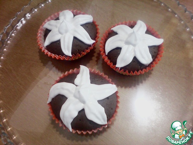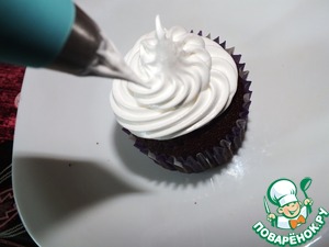 [+5]Безе, как потом выяснилось, я немного недовзбила, поэтому пришлось отказаться от высоких башен на кексах. А еще я забыла сфотографировать капкейк в разрезе, но он внутри выглядит так же как и у Вас.