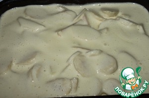 • Бананы очистить, нарезать. Выложить на яблоки.