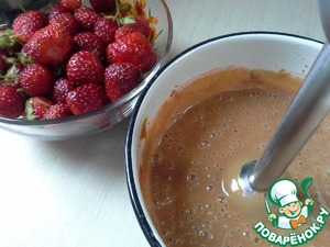 Взбиваем сгущенку с размолотой клубникой.