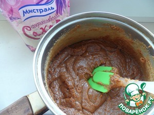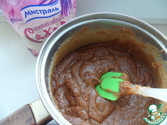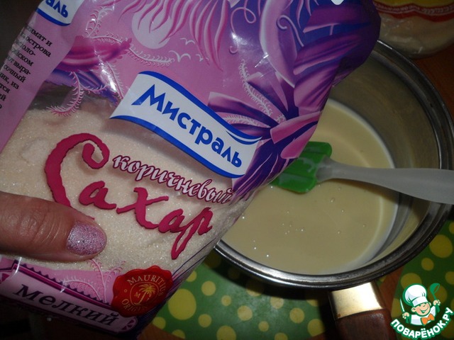 • Смешать сгущенное молоко с мелким коричневым сахаром ТМ «Мистраль» (он придаст блюду наиболее выраженный карамельный вкус и быстро растворится), добавить туда сливочное масло и варить, помешивая 30 минут до густого коричневатого состояния.