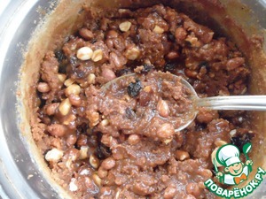 • Кешью порезать на 3 части и вместе с арахисом