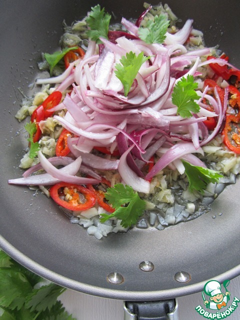 - Соус (рыбный - 1 ч.л., чили сладкий - 1 ст.л.) — 1,5 ст. л.