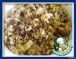 Смесь выложить в миску, дать остыть, добавить грибы, сыр, поперчить (если нужно, посолить) и хорошенько перемешать.