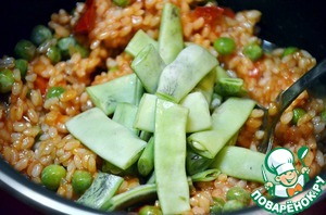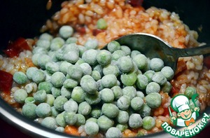 Рецепт «Паэлья с морепродуктами и зелёным горошком»: