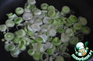 На оливковом масле обжариваем лук-порей до мягкости, но не зажариваем. -